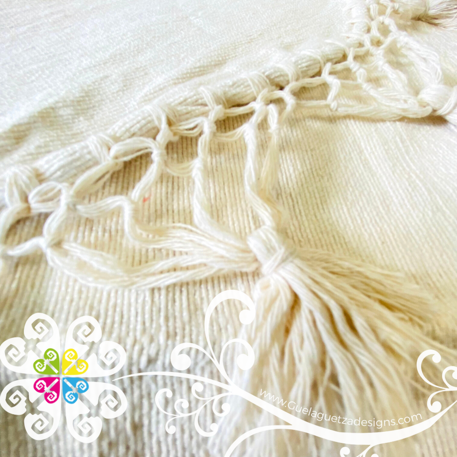 A beautiful piece made with cotton threads in plain elegant natural color to create a harmony of hues for your home. Each piece is woven by hand in a foot-treadle loom, shaped with the movement between the artisans’ feet and pedal. Once the length of the piece if finished, the fabrics are taken to the sewing workshop, and from there the fringe is weaved thread by thread. Add a spark of color with the handmade otomi runner!