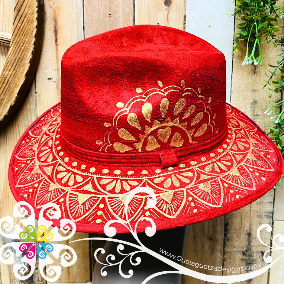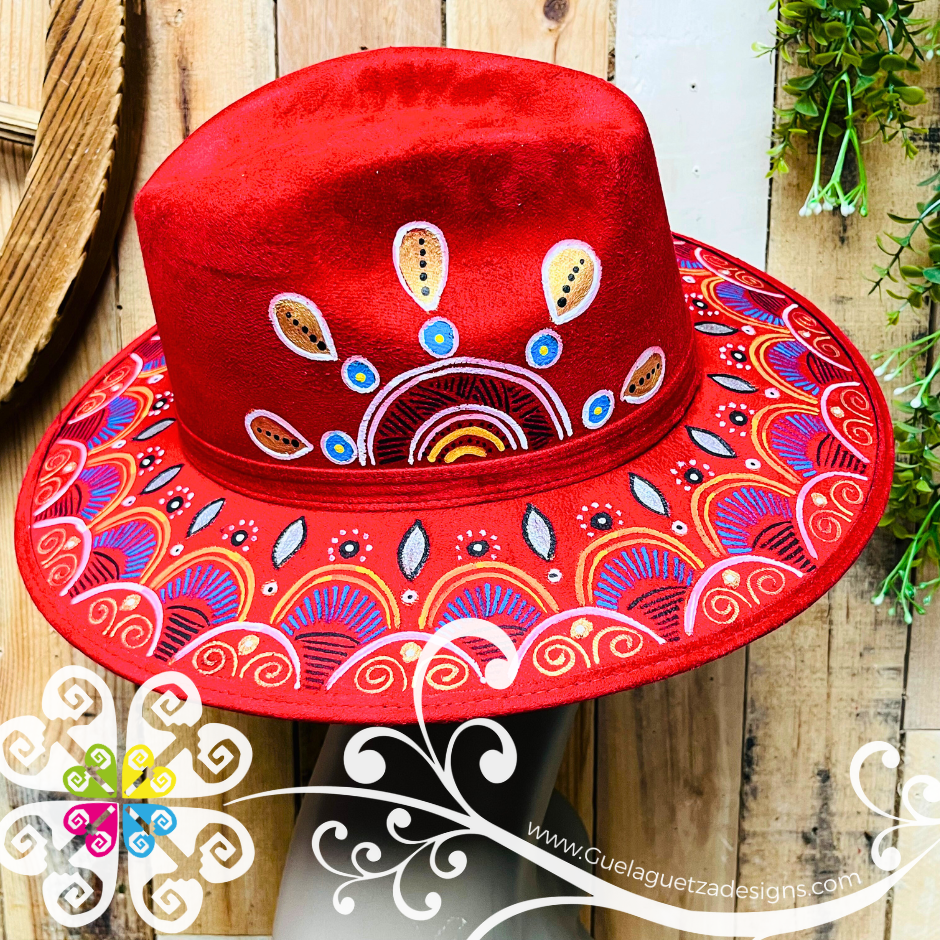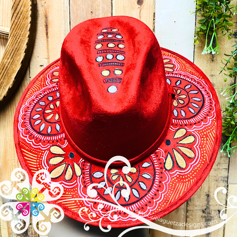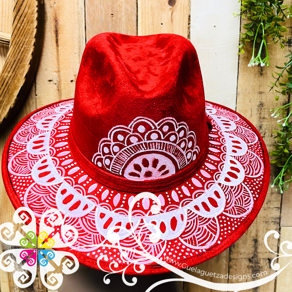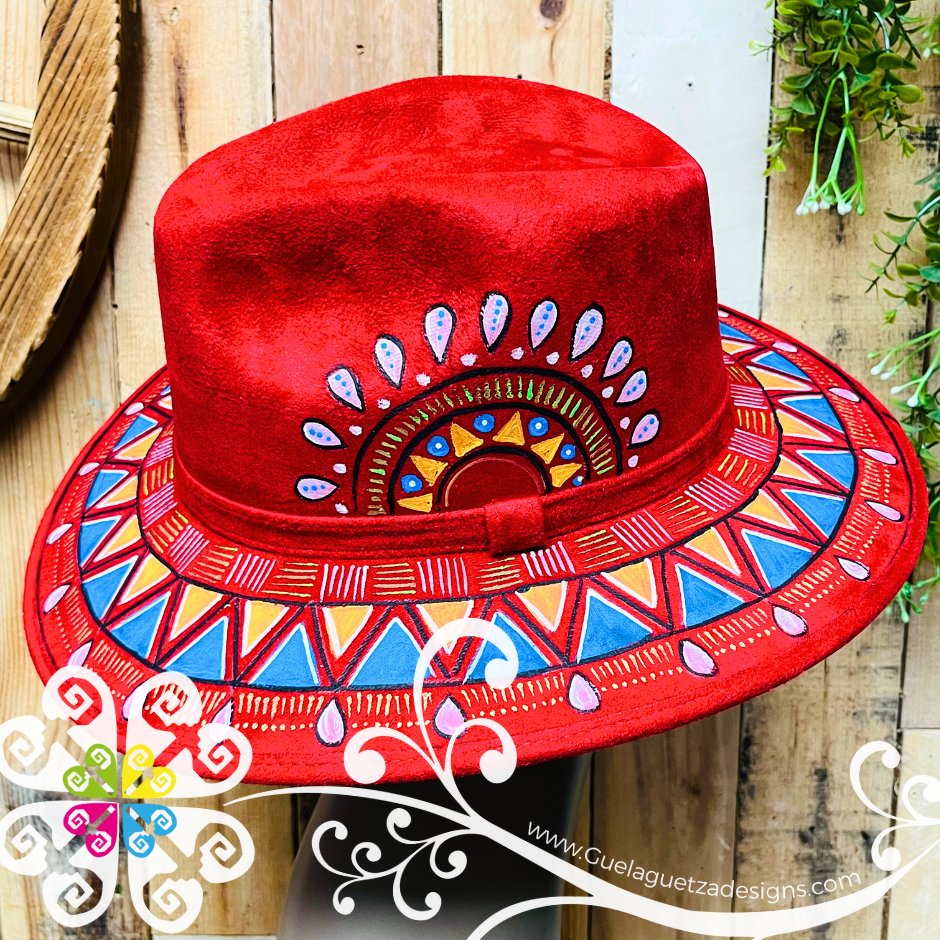 Wine Red Indiana Mitla Velvet Hat - Hand Painted Hat