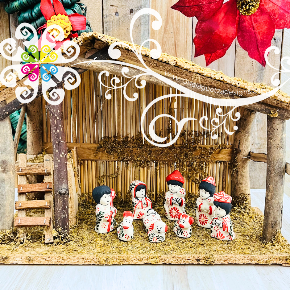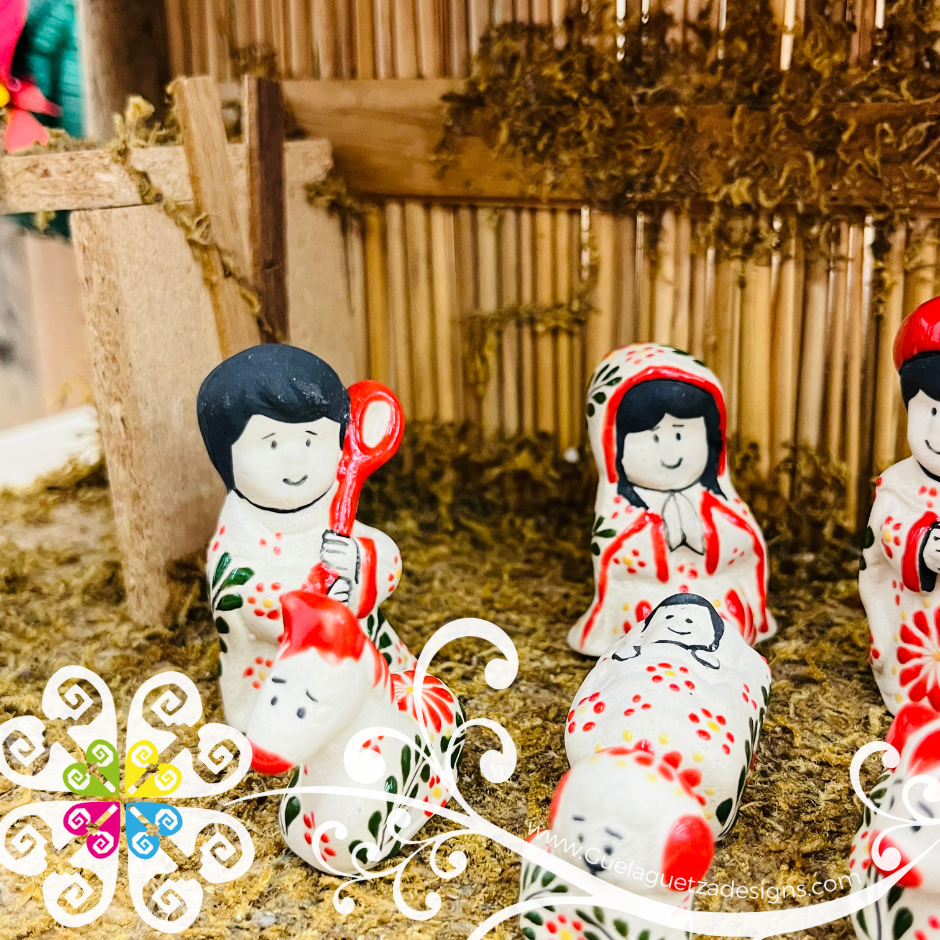 Behold the most beautiful mini Nativity Set where pre-hispanic inspirations meets modern life! You will absolutely fall in love with this collection handpainted by workshop Ceramica Garcia from Temascalcingo, Edo de Mexico.