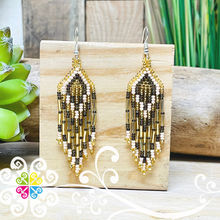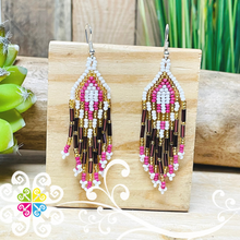 One of a kind earrings made with petite glass beads. Each design uses different shapes and colors, featuring a vibrant rainbow palette or just plain colors.