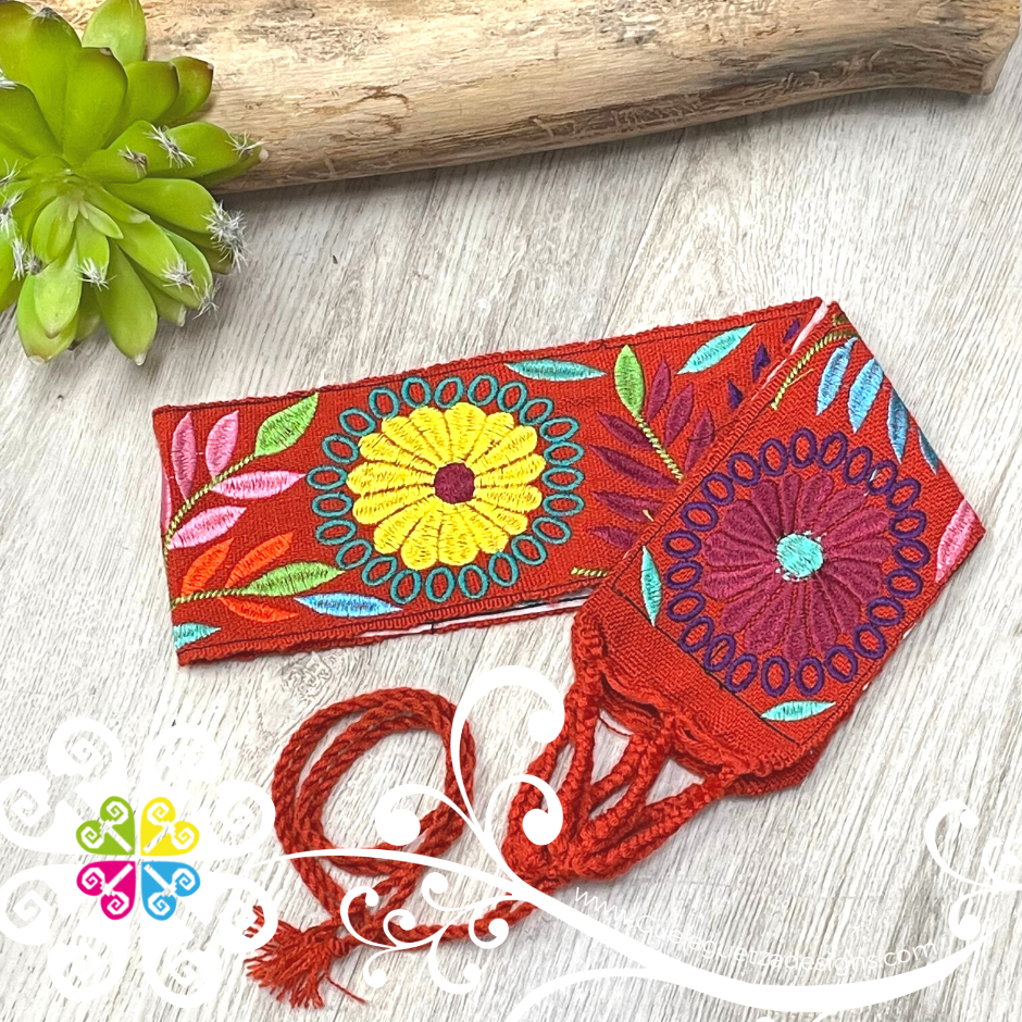 Super cute belt for any blouse or dress, decorated with machine embroider details. Perfect for any type of size, just tie the strings and ready to go. Fits from small to large size, even children!