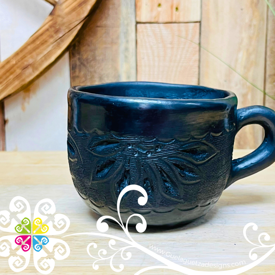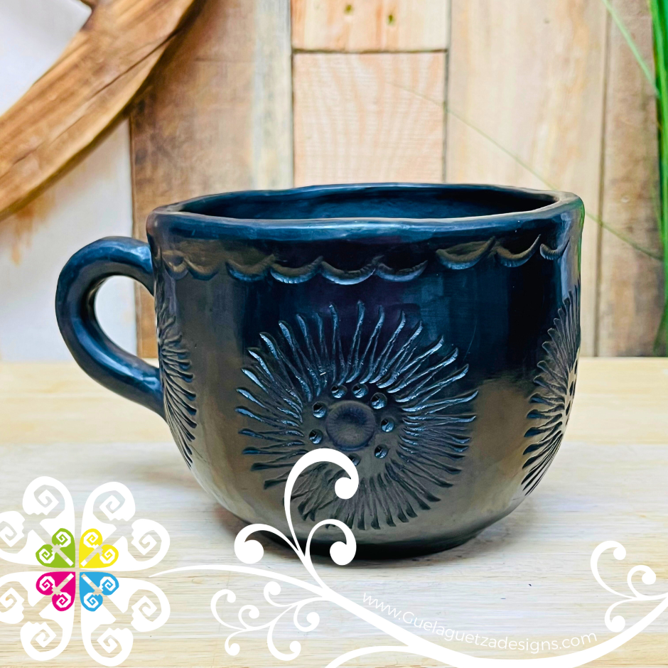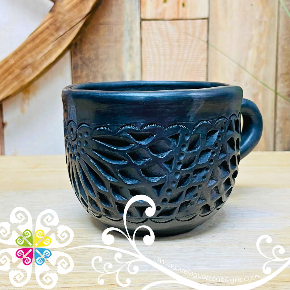 Round Black Clay Calado Mug - Barro Negro Oaxaca