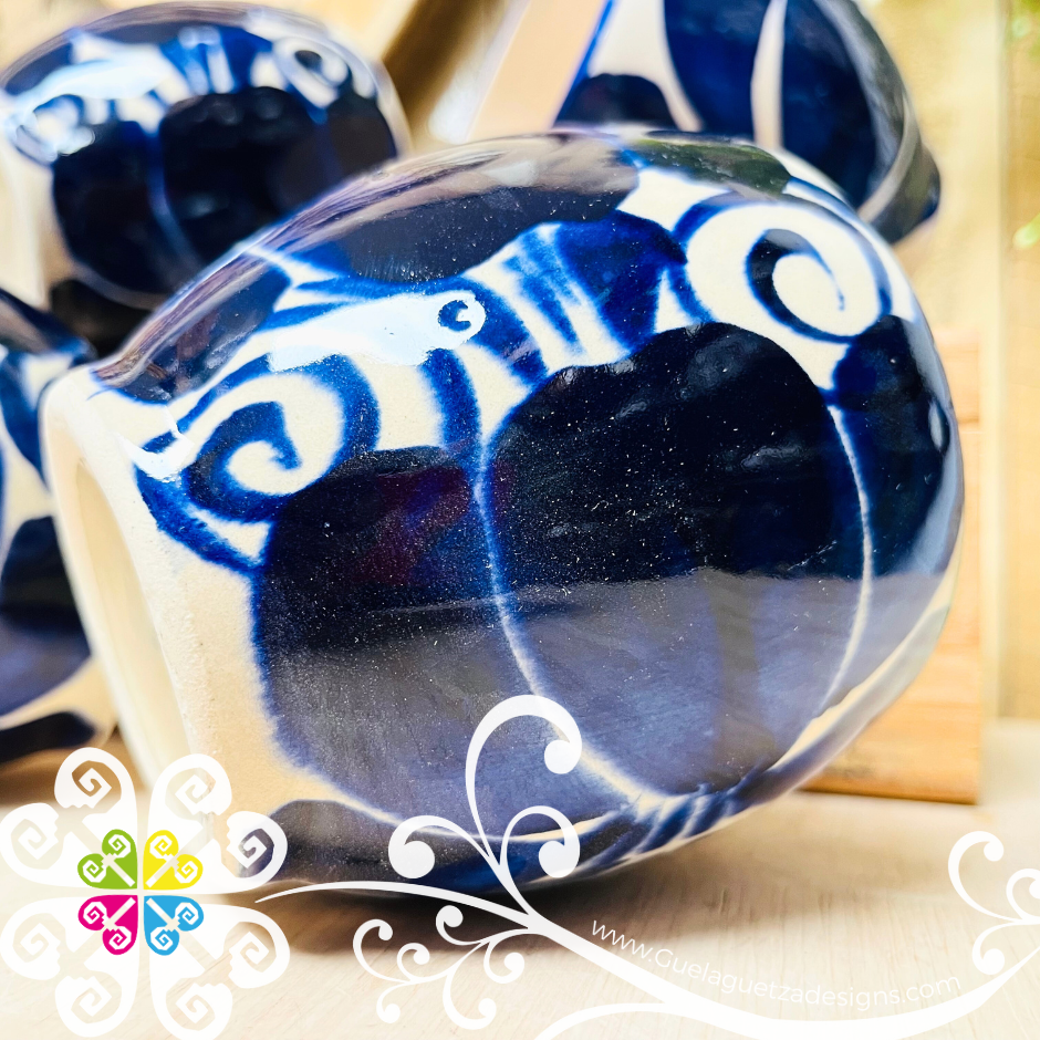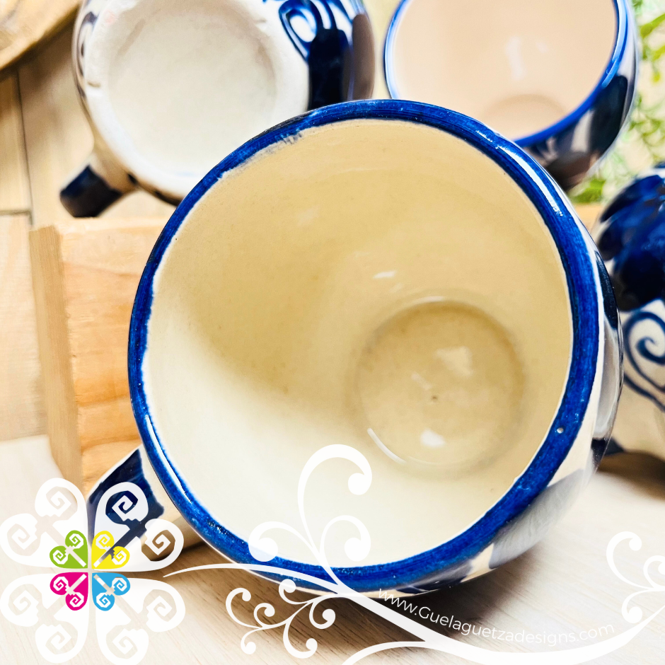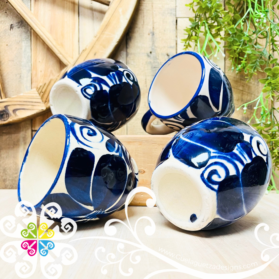 Set of 4 Blue Flor de Arana Mugs - Set Taza Ceramica