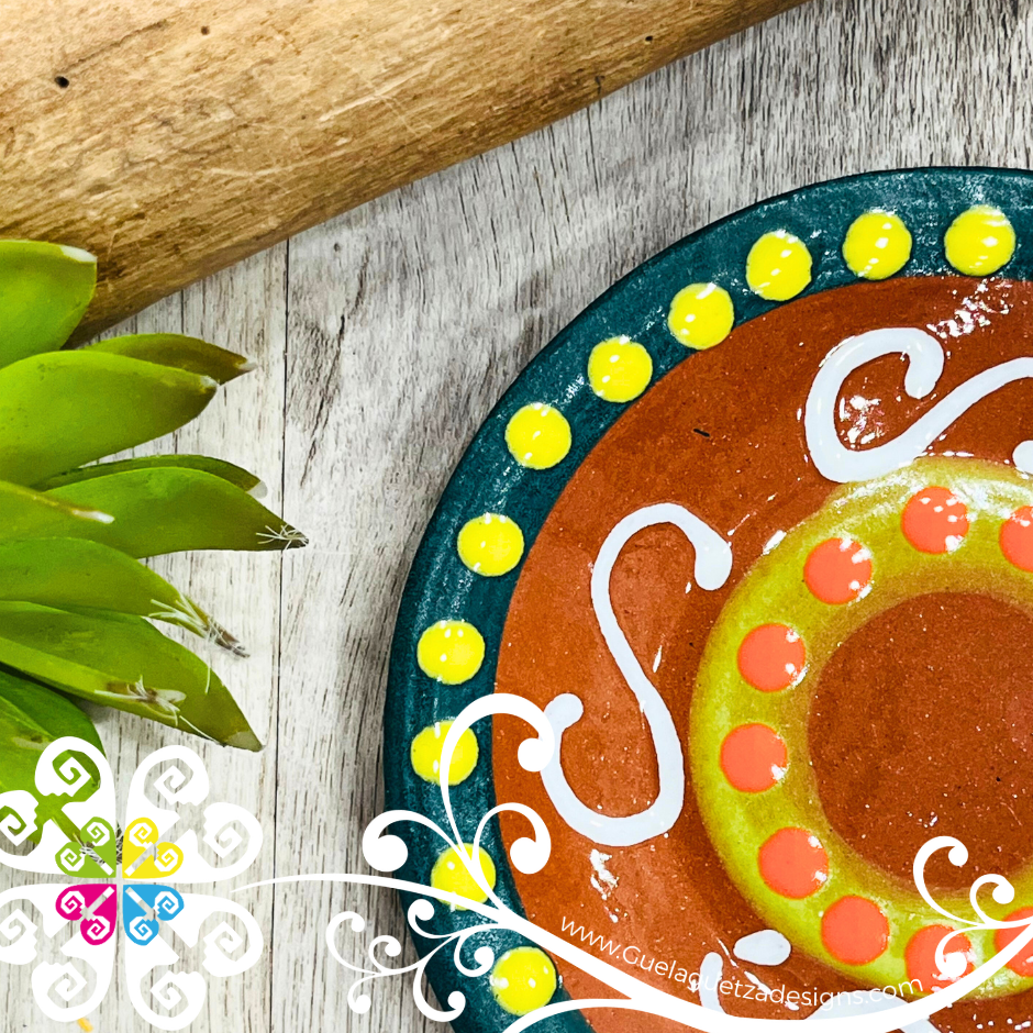 Beautiful clay plate handcrafted by talented artisans from Dolores Guanajuato, Mexico, using traditional techniques. Perfect for decoration or to serve your favorite appetizers!