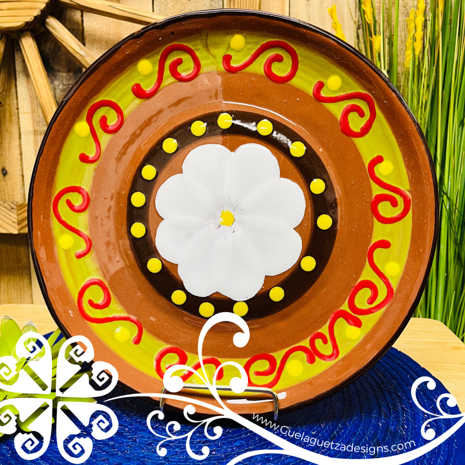 Beautiful clay plate perfect for decoration, appetizers or desserts. Each design is crafted by hand, with love and passion by workshop from Guanajuato, Mexico using traditional techniques.