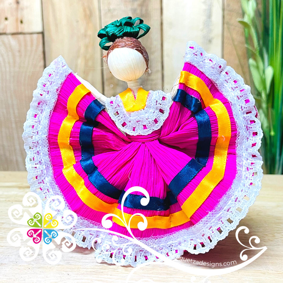 Set of 4 Mini Corn Husk Doll - Wide Skirt