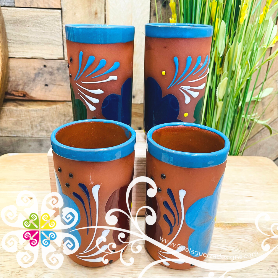 Set of 4 Small Mexican Clay Cups- Vaso Mexicano