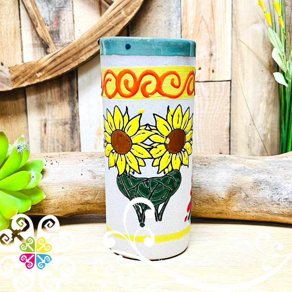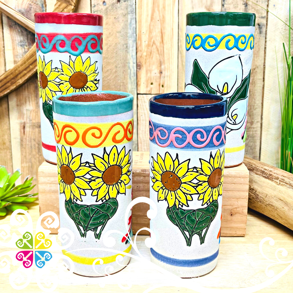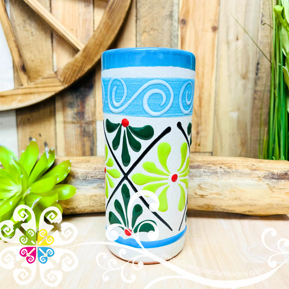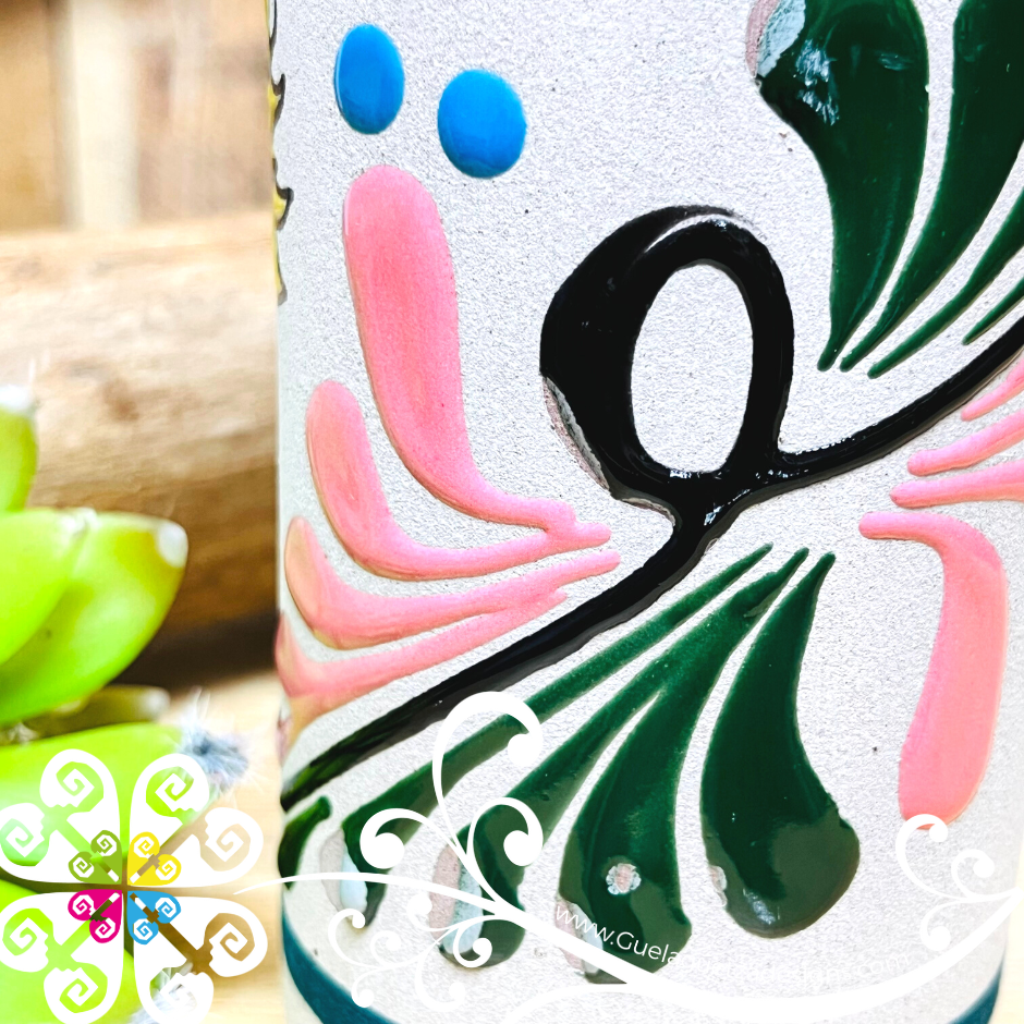 Bring the color of Mexico’s culture to your home or office with this original vase. Each design is made by hand, with love and passion by artisans from Guanajuato, Mexico.