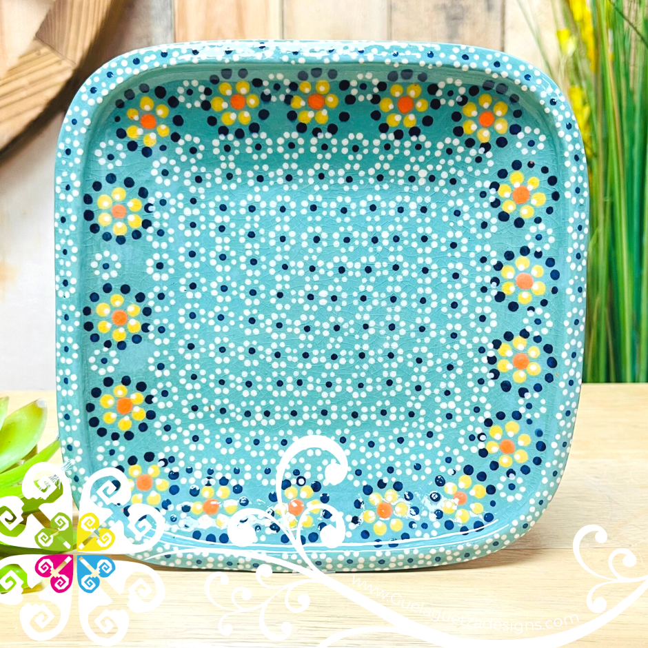 Beautiful clay plat created using ancient process by Mexican artisans from Capula, Michoacán, Mexico. Each design is crafted by hand by Family Glez Ayala with love and passion. Perfect for decoration or to serve your favorite appetizers!