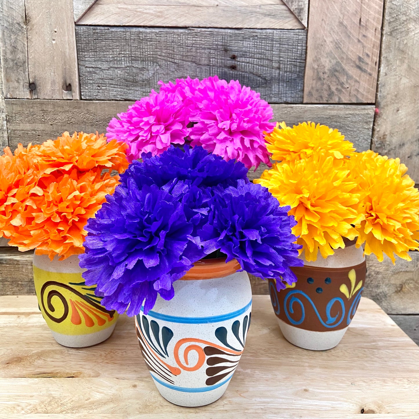 Beautiful cempasuchil flowers! Handmade by artisans from Hidalgo, Mexico. Perfect decor for your altar/ofrenda on Dia de los Muertos, or great for anytime of the year!