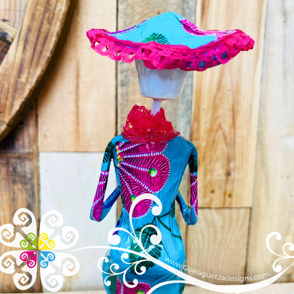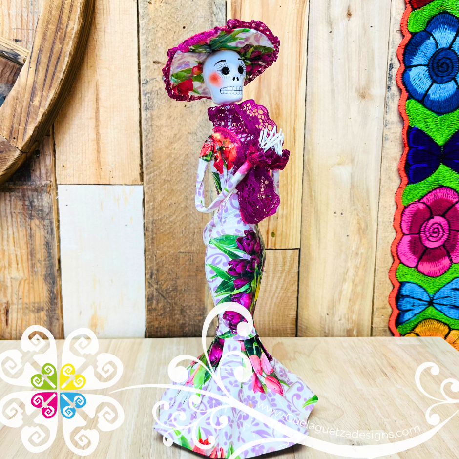 Beautiful catrina handmade with paper "mache". Each design is very unique and not replicated.