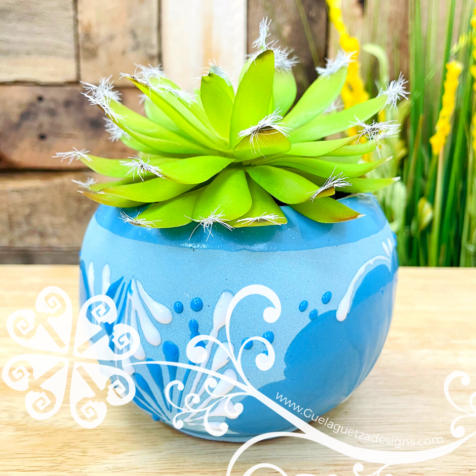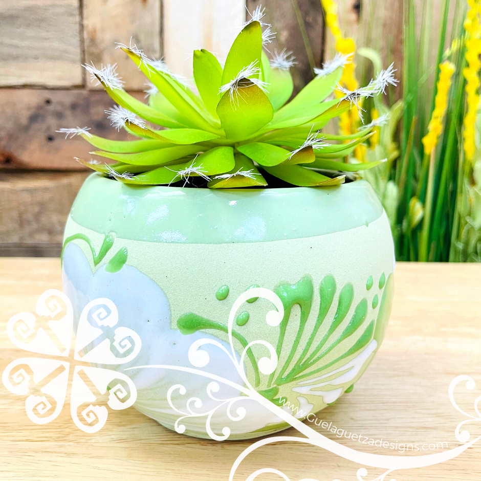 Bring the colorful of Mexico’s culture to your home or office with this original clay planter. Each design is made by hand, with love and passion by artist from Michoacán, Mexico.