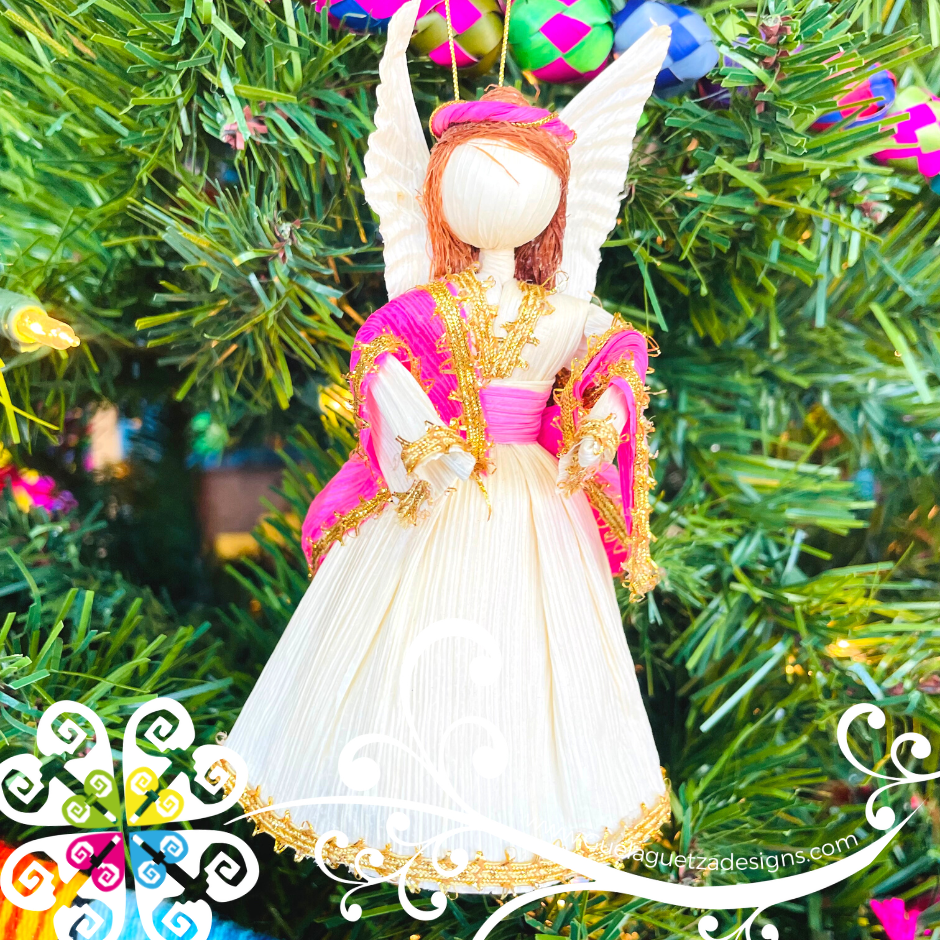 Super cute angel perfect for your Christmas tree or just to hang anywhere to cheer up the space. Handmade using corn husk from Jalisco's fields, decorated with sparkling lace.
