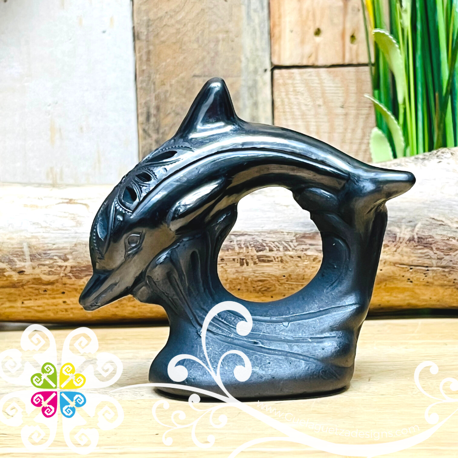 Small Dolphin Black Clay Figure - Barro Negro Oaxaca
