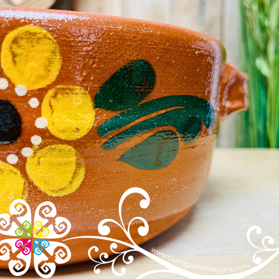 EACH CAZUELA IS HAND PAINTING, THEREFORE EACH DESIGN IS UNIQUE. FLOWER COLORS AND DESIGNS WILL BE DIFFERENT THAN PICTURES. IF YOU WANT A SPECIFIC COLOR PLEASE REACH OUT BEFORE ORDERING.