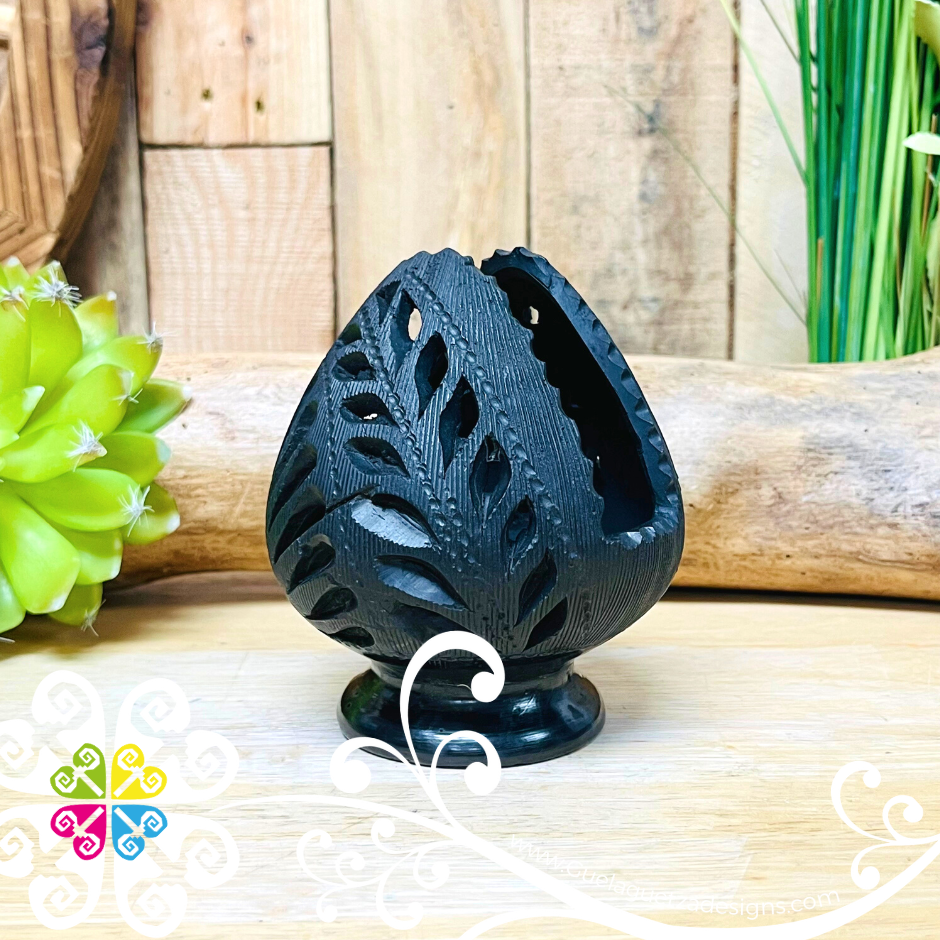 Beautifully handcrafted candle holder made with care and love by the workshop from San Bartolo Coyotepec Oaxaca, Mexico. Light up your favorite candle and cover with this vase, you will love the beautiful shapes of lighting coming out of it.