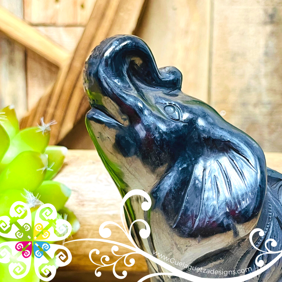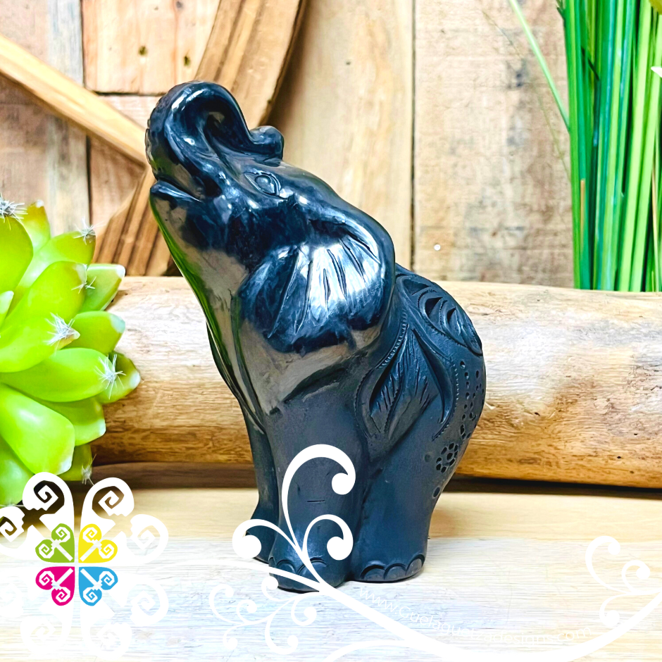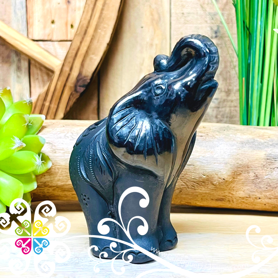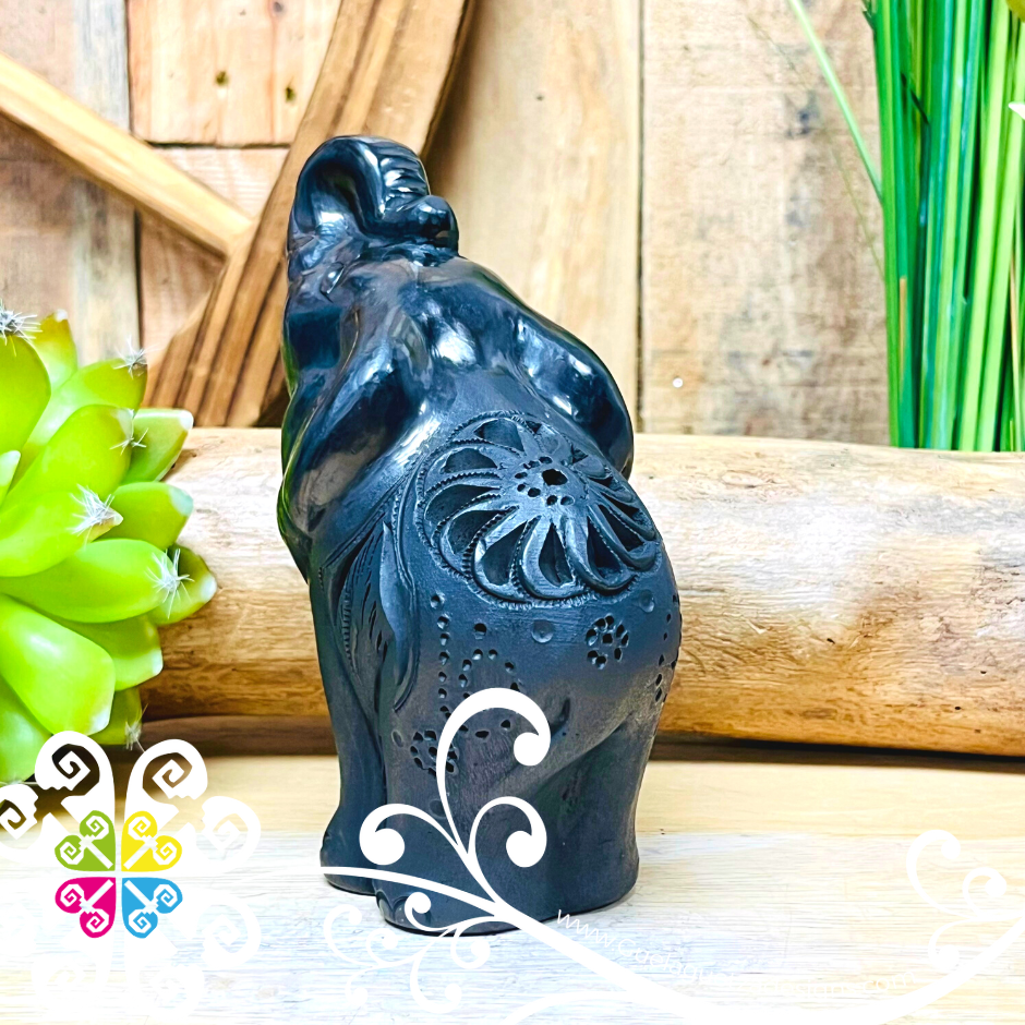 Small Standing Elephant Figure - Black Clay Oaxaca