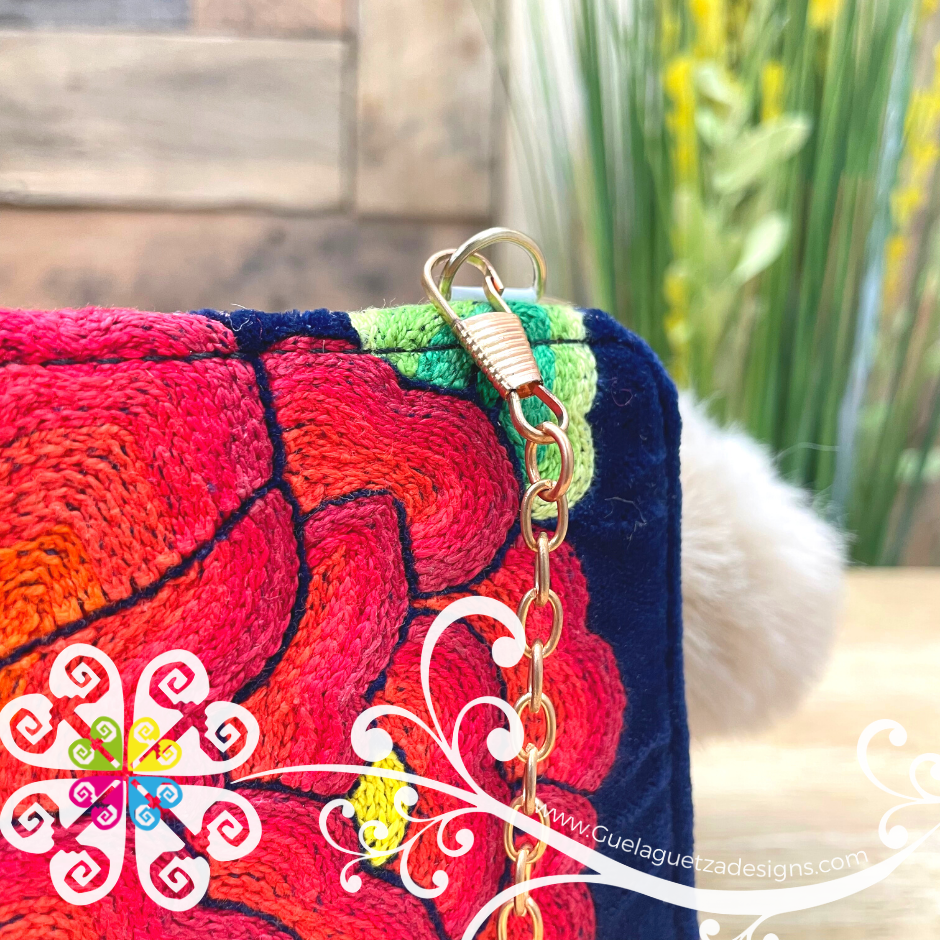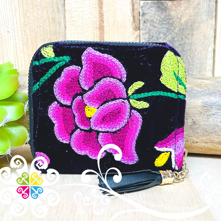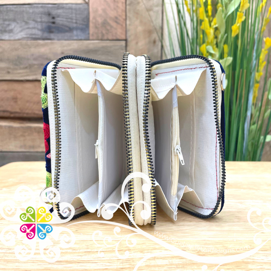 Super cute wallet decorated in the front with handmade embroider with flowers and designs inspired on the region of Tehuantepec, Oaxaca.