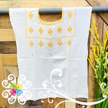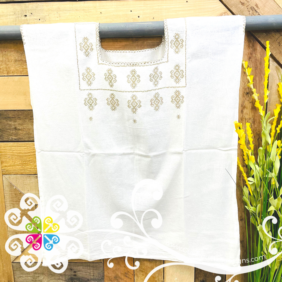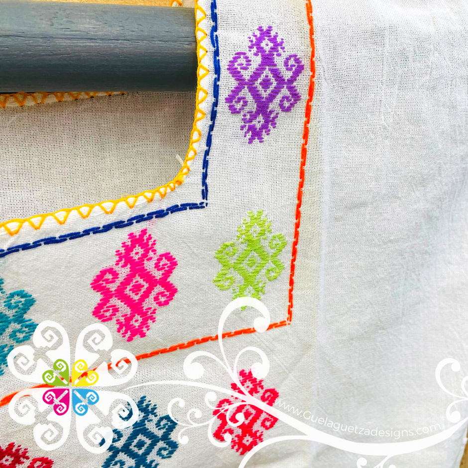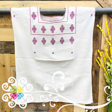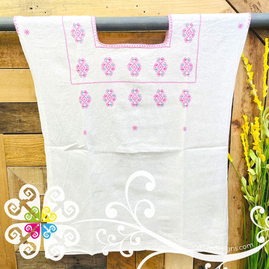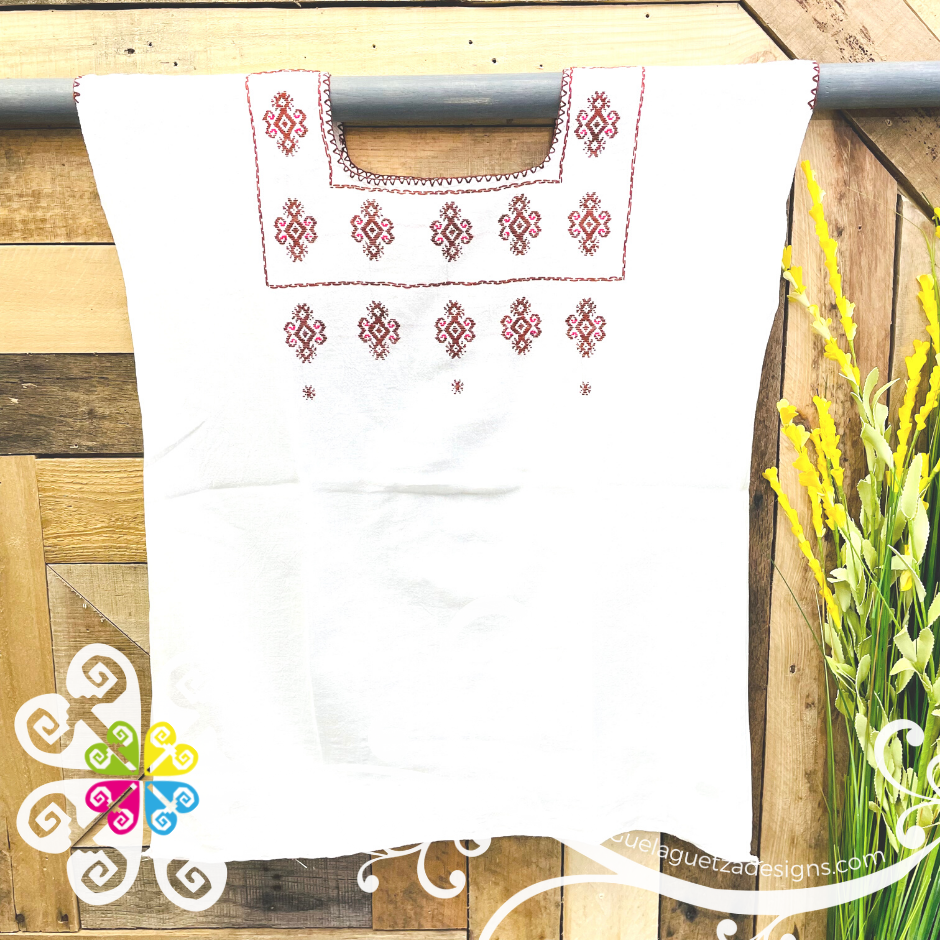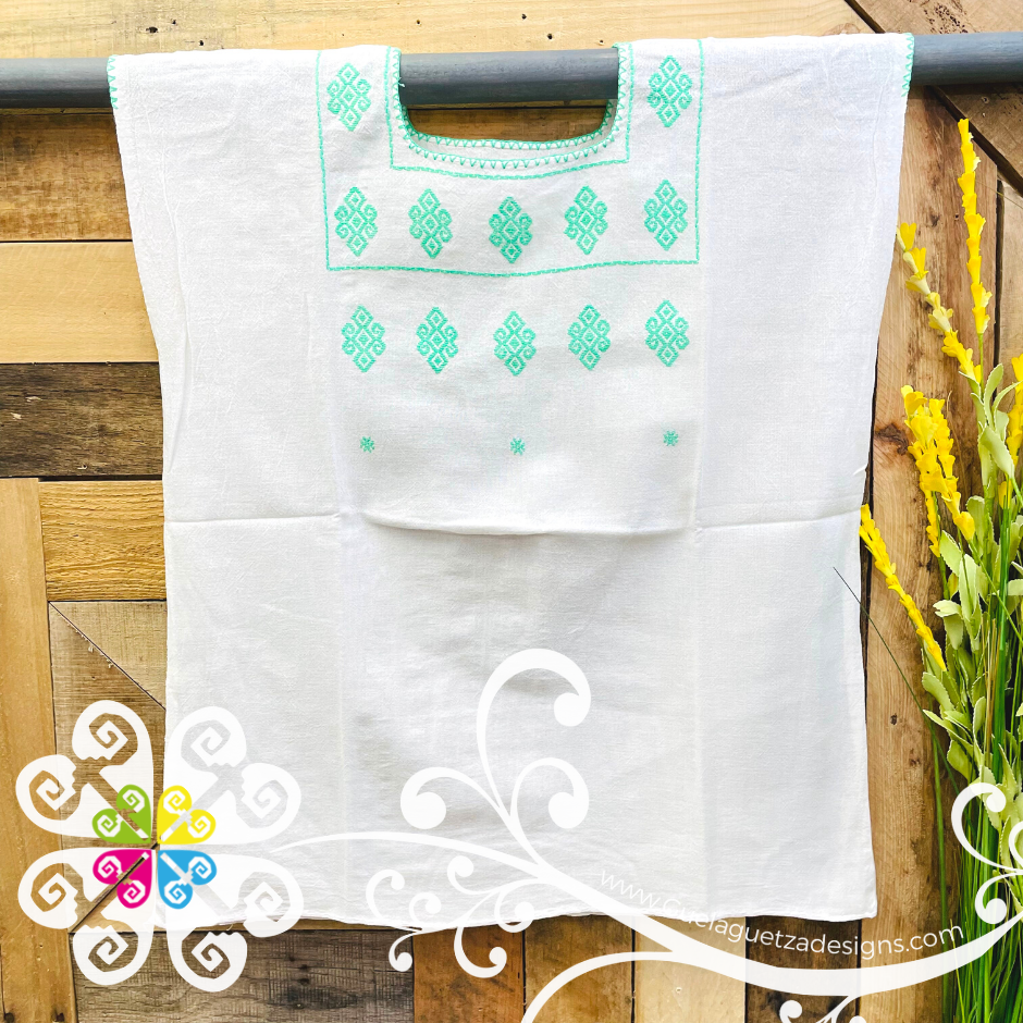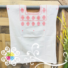 The neck is decorated with handmade embroider made with cotton threads. You will love the super cute snowflake designs around the neck. Crochet around the neck and part of the sleeve. Fabric is 100% cotton. Once size available, fits small - medium.