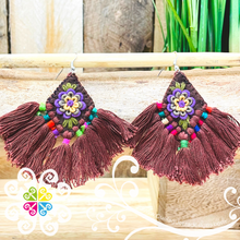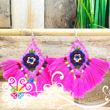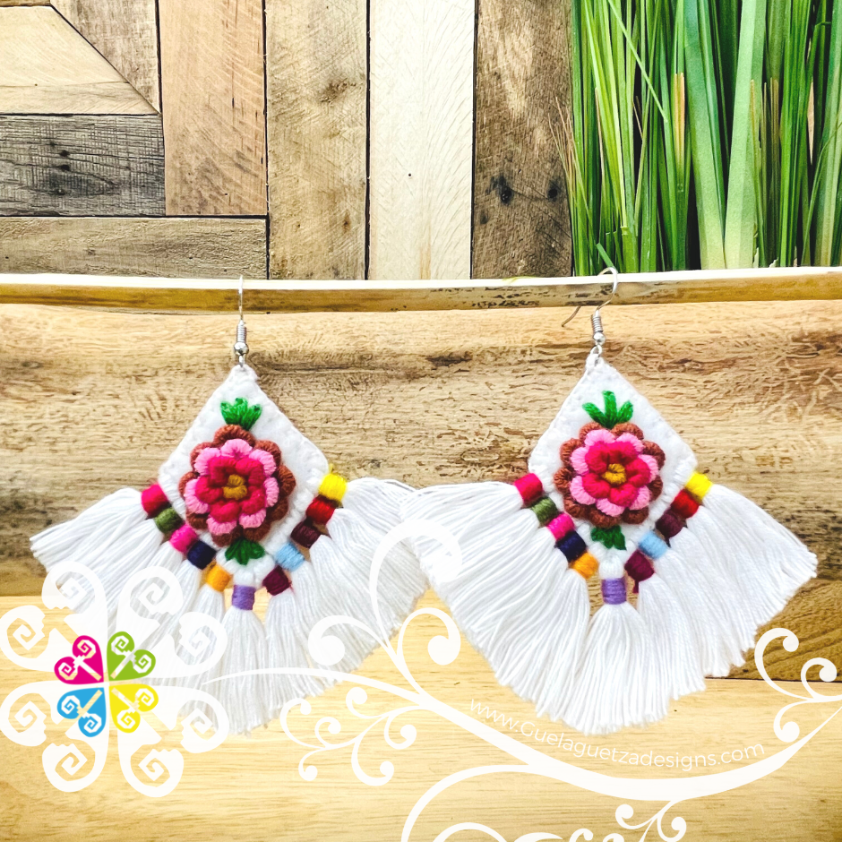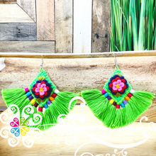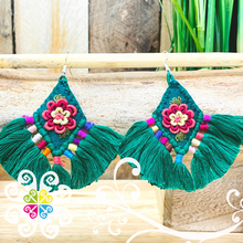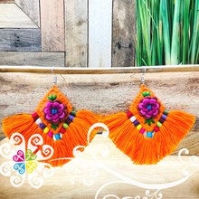 One of a kind handcrafted earrings made with cotton threads. You will love the handmade flower design in the front. Super light and fun design to look cheerful.