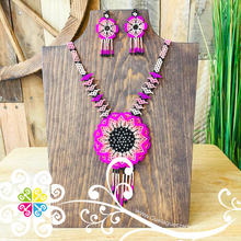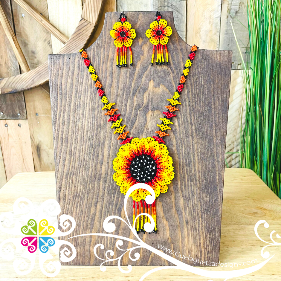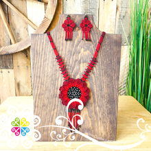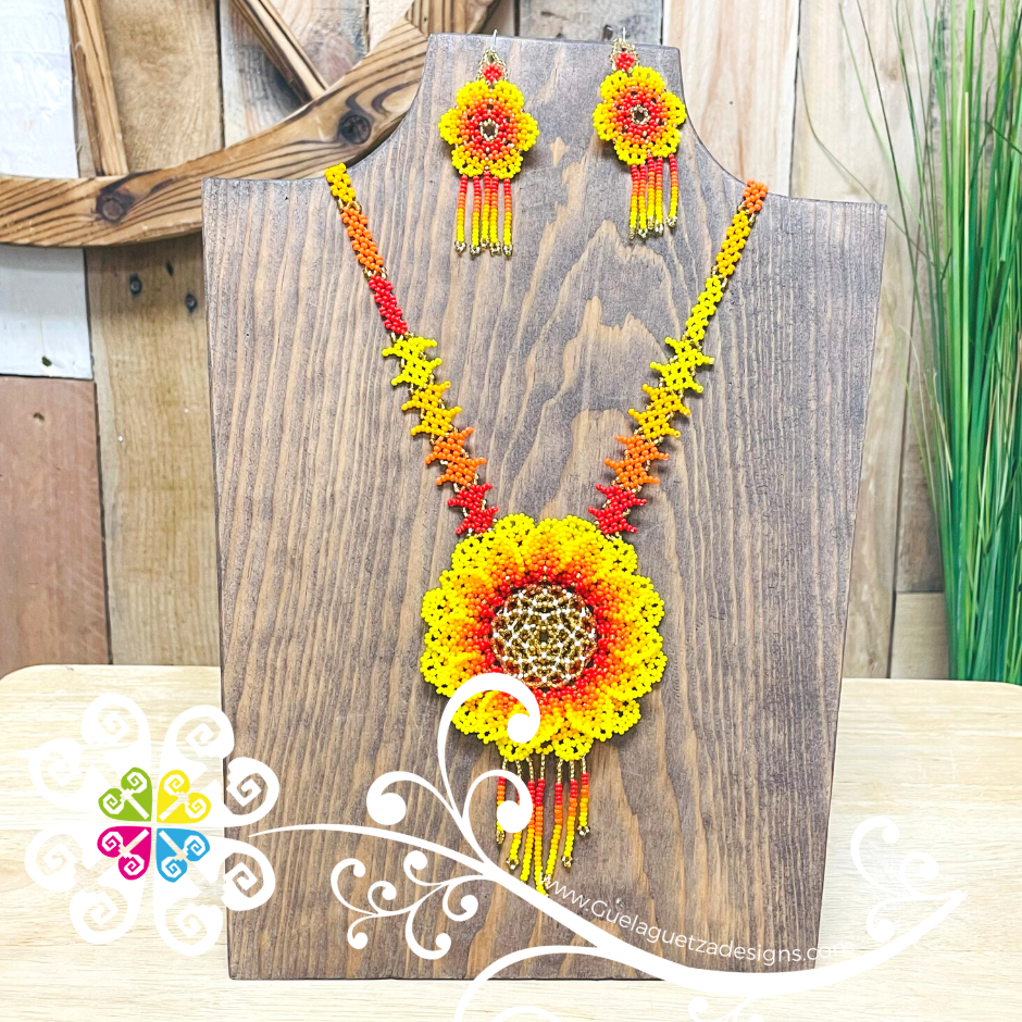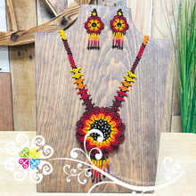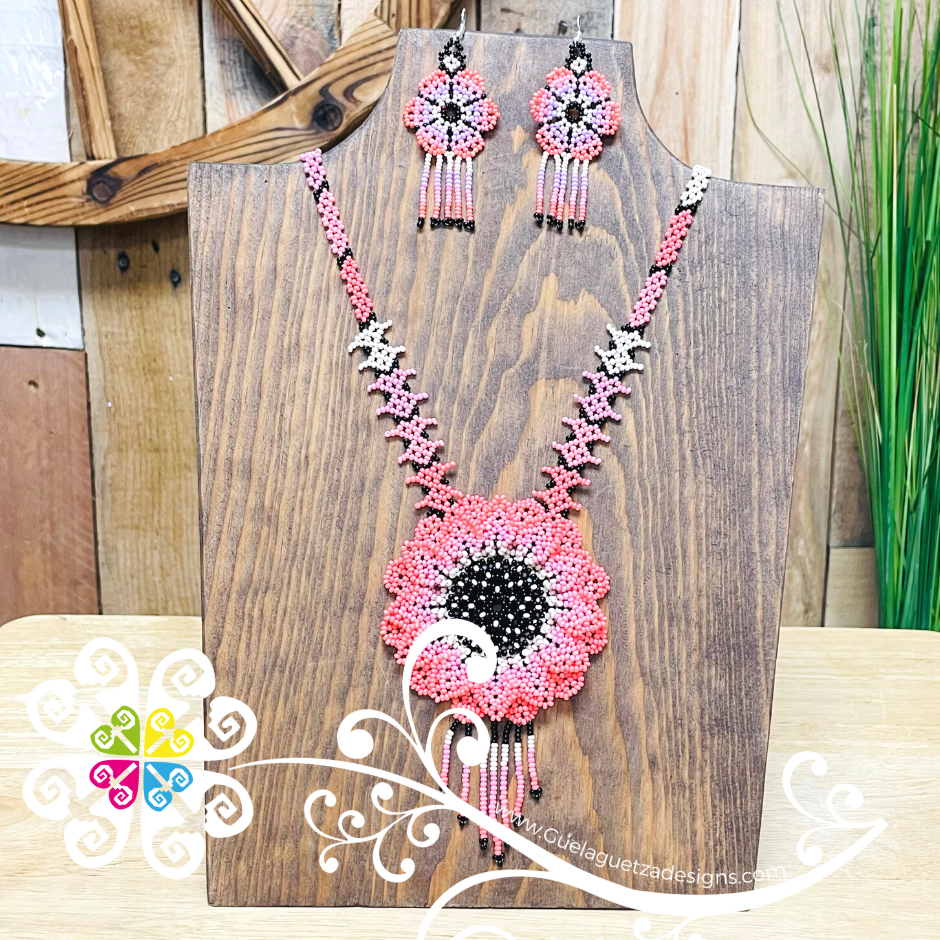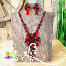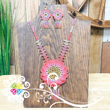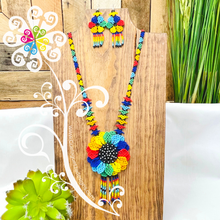Beautiful 2 piece set that includes matching earrings and necklace so you look amazing next time you go out. Each design is made with petite glass beads, featuring a long and elegant necklace with fretwork designs and super cute long earrings made with different colors that can go from vibrant rainbow palette or just subtle tones.