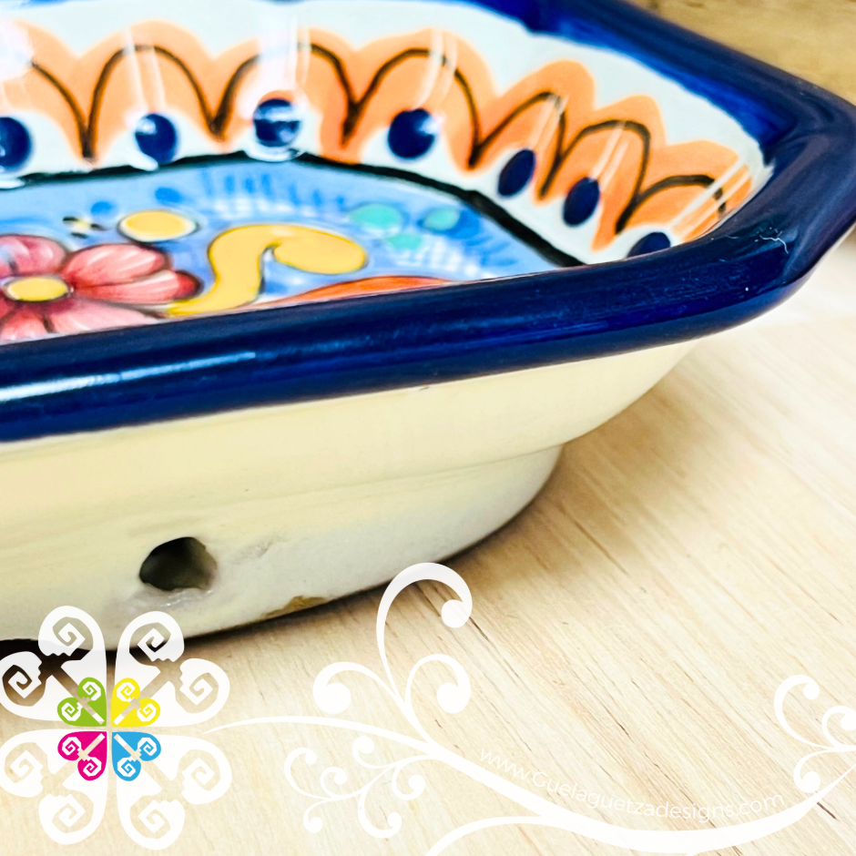 Beautiful trinket tray hand crafted by hand, with love and passion by artisans from Puebla, Mexico. The eye catching paint strokes on the Talavera Mug are enchanting. Creating and homey, welcoming aspect to the work of art. Friend and family will do nothing less than compliment your kitchens newest addition.