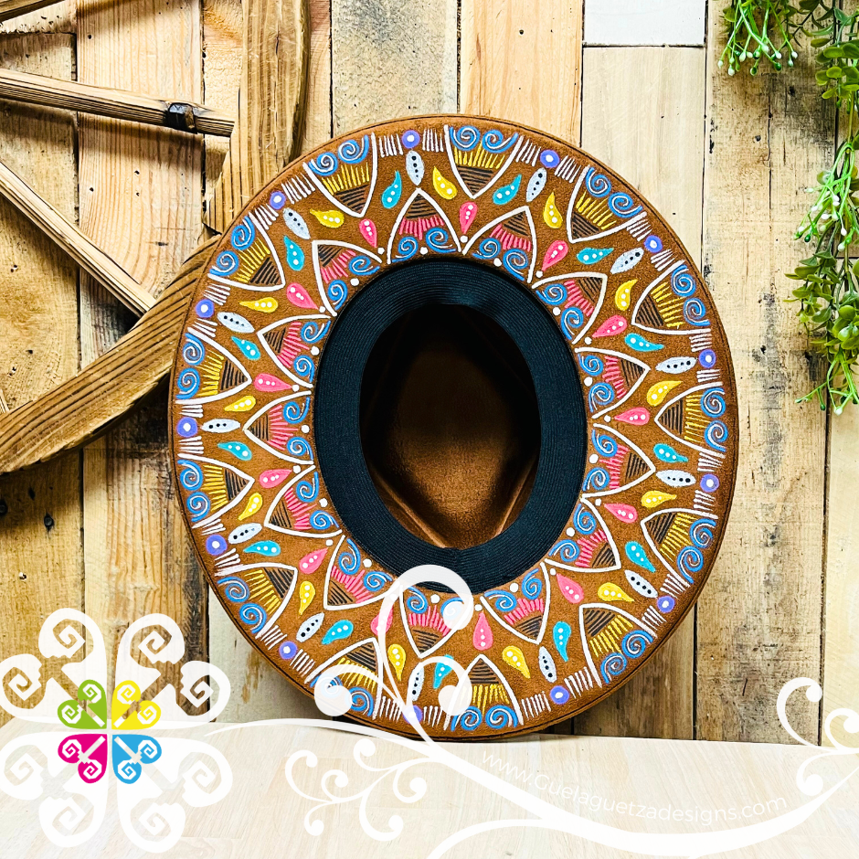 Tobacco Rhombus Mitla Velvet Hat - Peek-a-Boo Hand Painted Hat