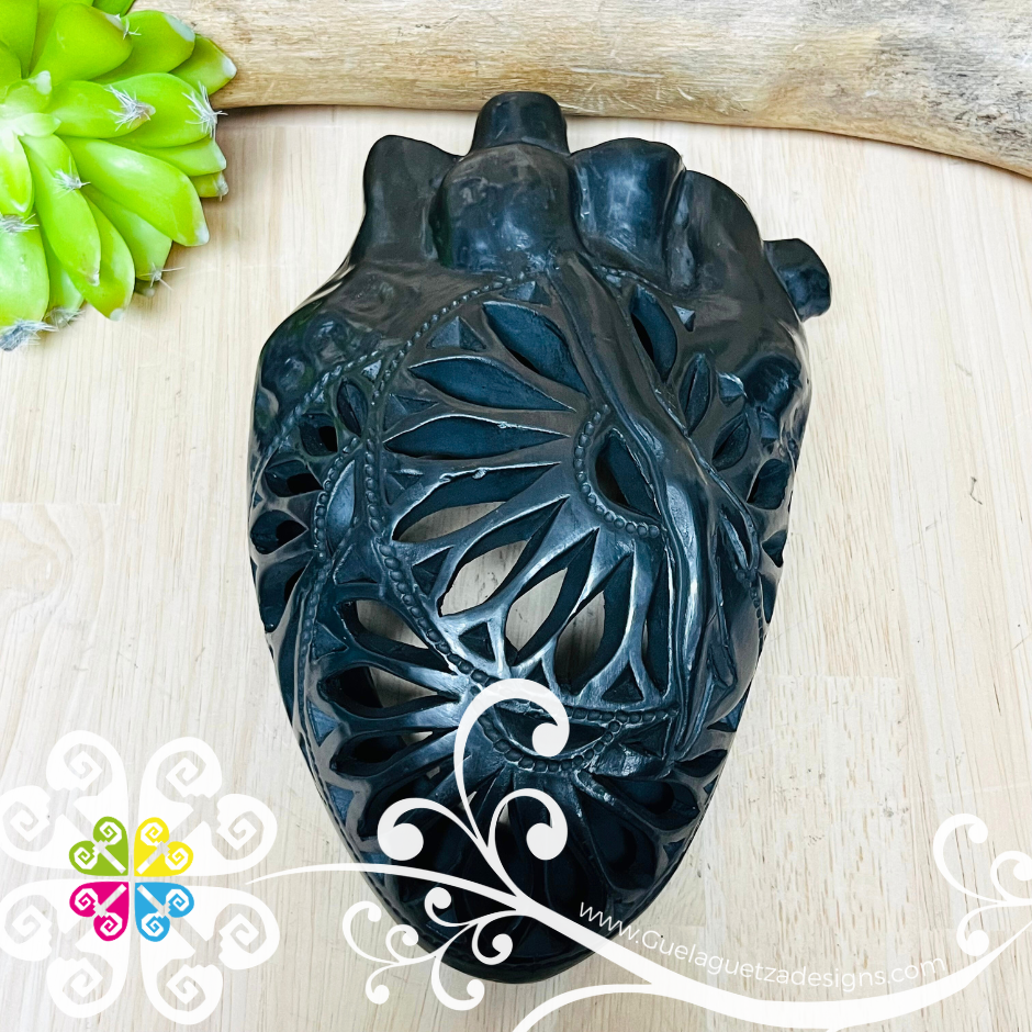 Large Valvula Corazon De Pared - Barro Negro Oaxaca