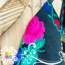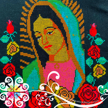 Beautiful one of a kind embroider gaban. Base is made with acrylic and cotton threads, decorated with hand made cross stitch embroider inspired on la Virgen de Guadalupe. You will absolutely love every single detail! Same design in front and back.