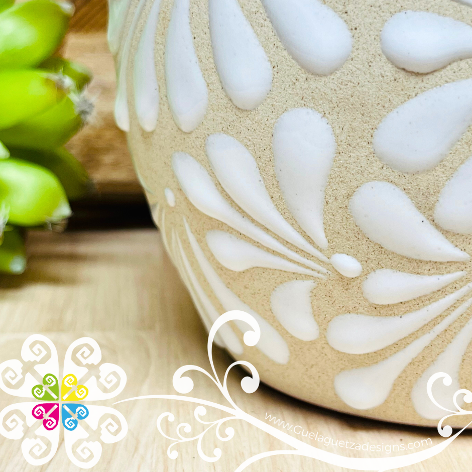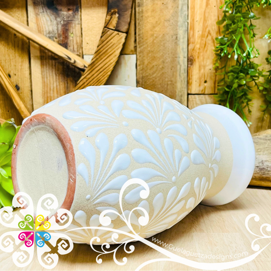 White Engobe Espiga Plumeado Florero Ovulo - Florero Barro