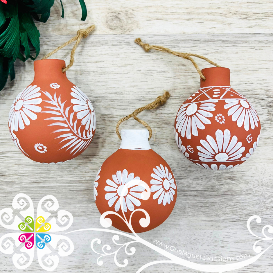 Beautiful handcrafted clay ornaments! Each piece is hand painted with care and love by our artisan Cindi from Guerrero, Mexico. The colors and designs are inspired on Mexico's culture. Each is truly one of a kind!