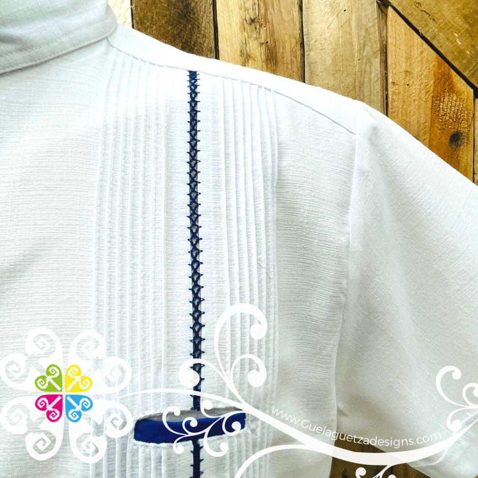 White with Royal Blue Lines Picuela Guayabera - Short Sleeve Linen Guayabera