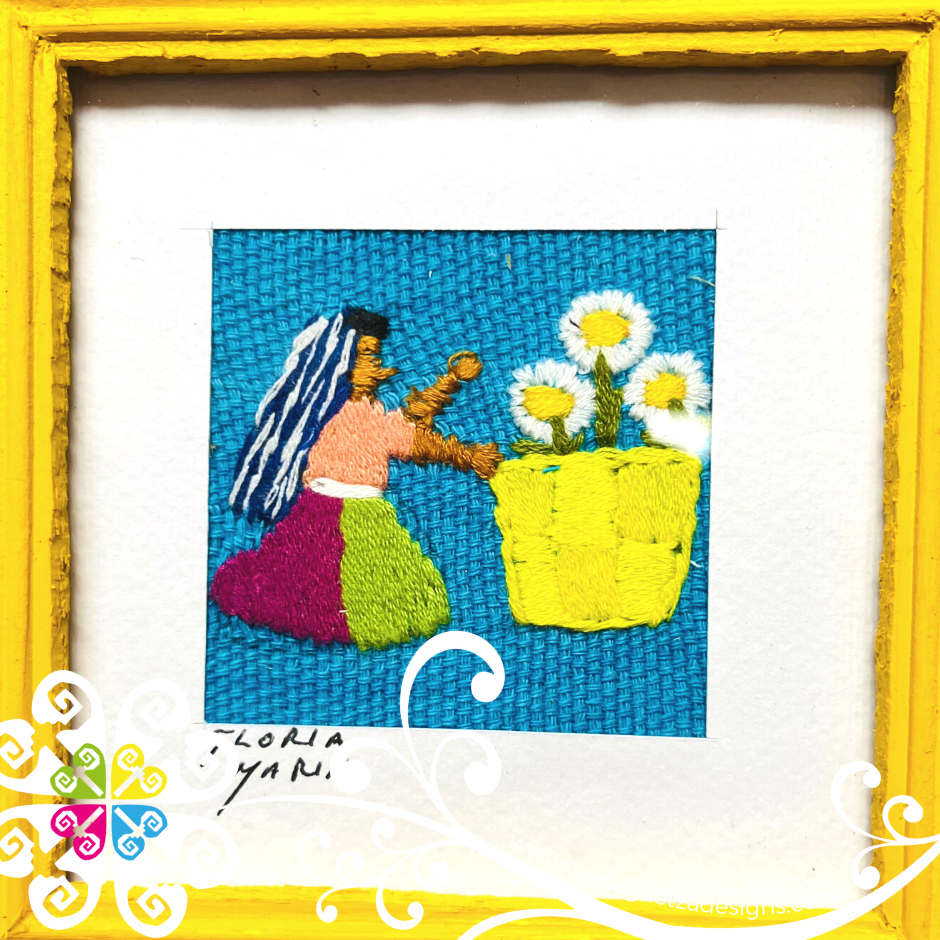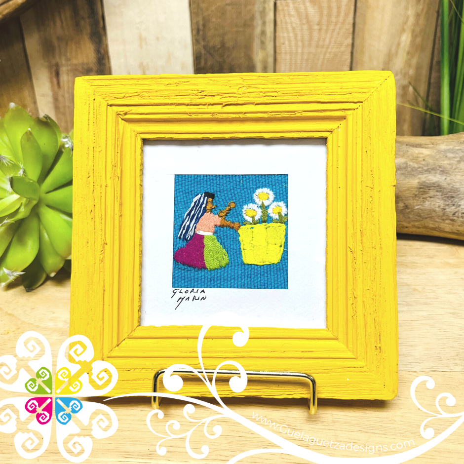 Yellow Culturas Bordadas - Embroidered Wood Frame
